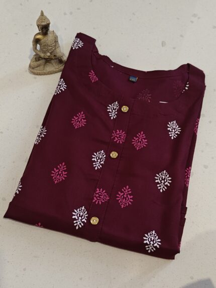 Festive Fuchsia semi-silk kurta with elegant mirror work
