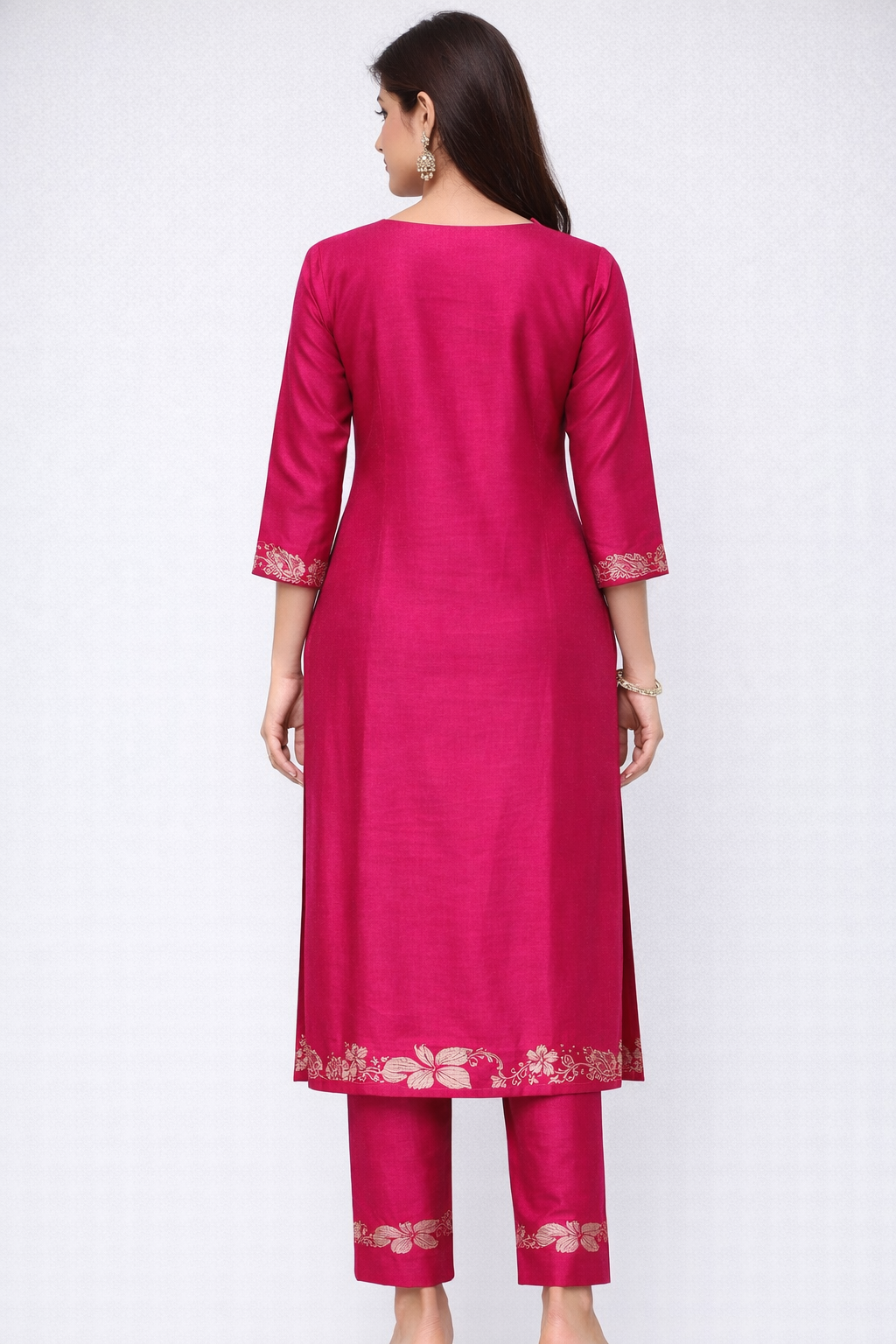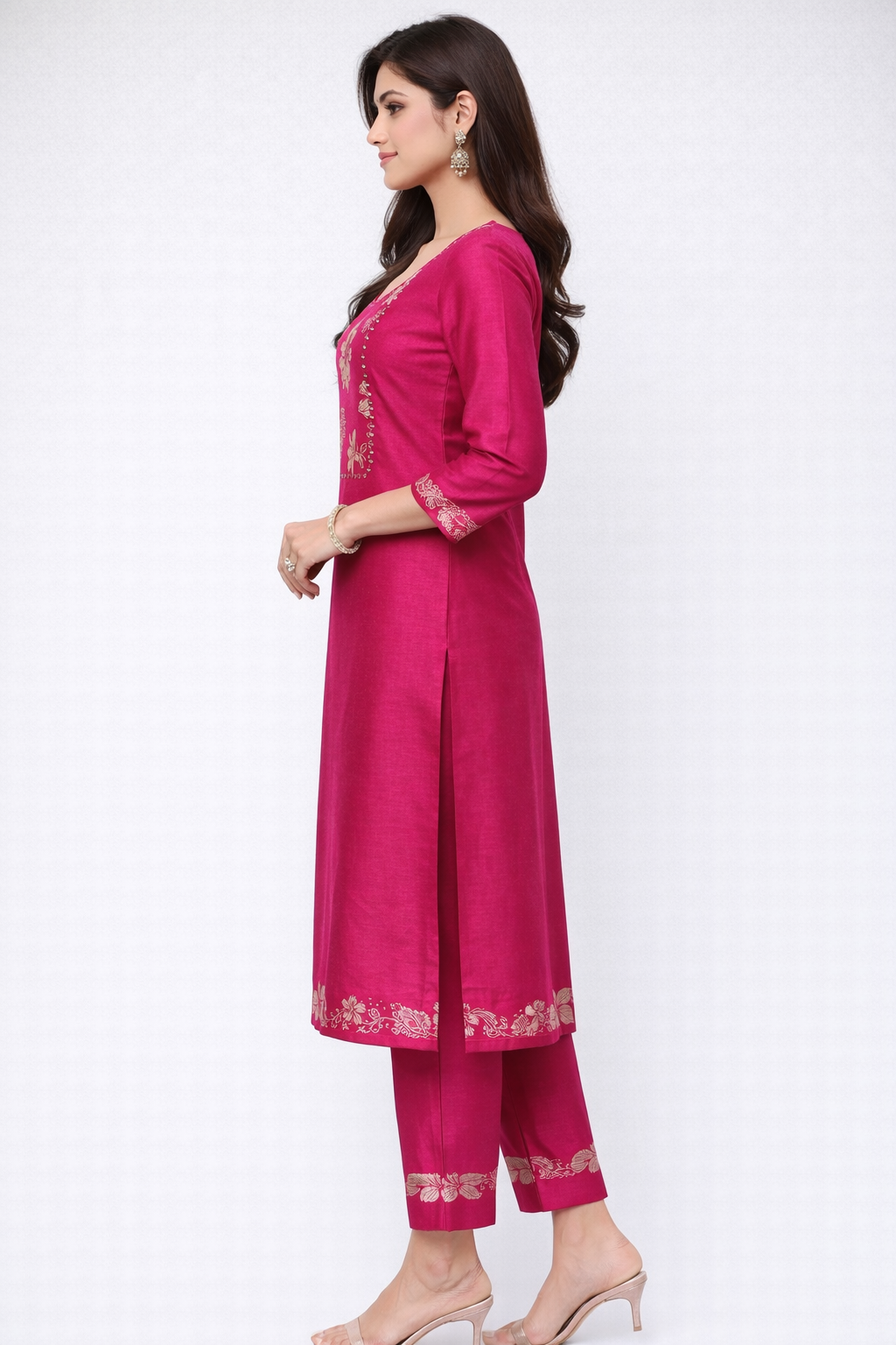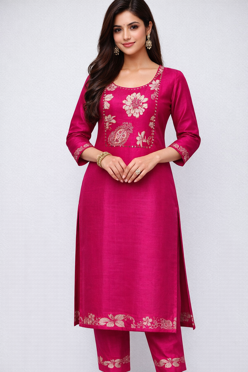Festive Fuchsia semi-silk kurta with elegant mirror work